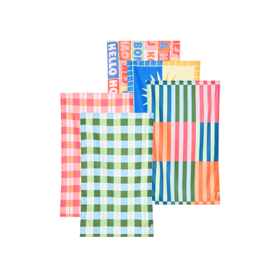 Complete kitchen towel sets featuring DryQ™ quick-dry fabric in coordinating designs. Perfect for busy households needing rotation, these sets ensure you always have fresh towels available. Each delivers streak-free finishes, super-absorbent performance, and stays odour-free. Made from GRS certified recycled materials. Great value versus buying individually.
