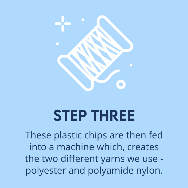 Every single one of our products is made from 100% recycled materials. More specifically - plastic. It’s shredded, then woven into the lovely material that makes all of our product.