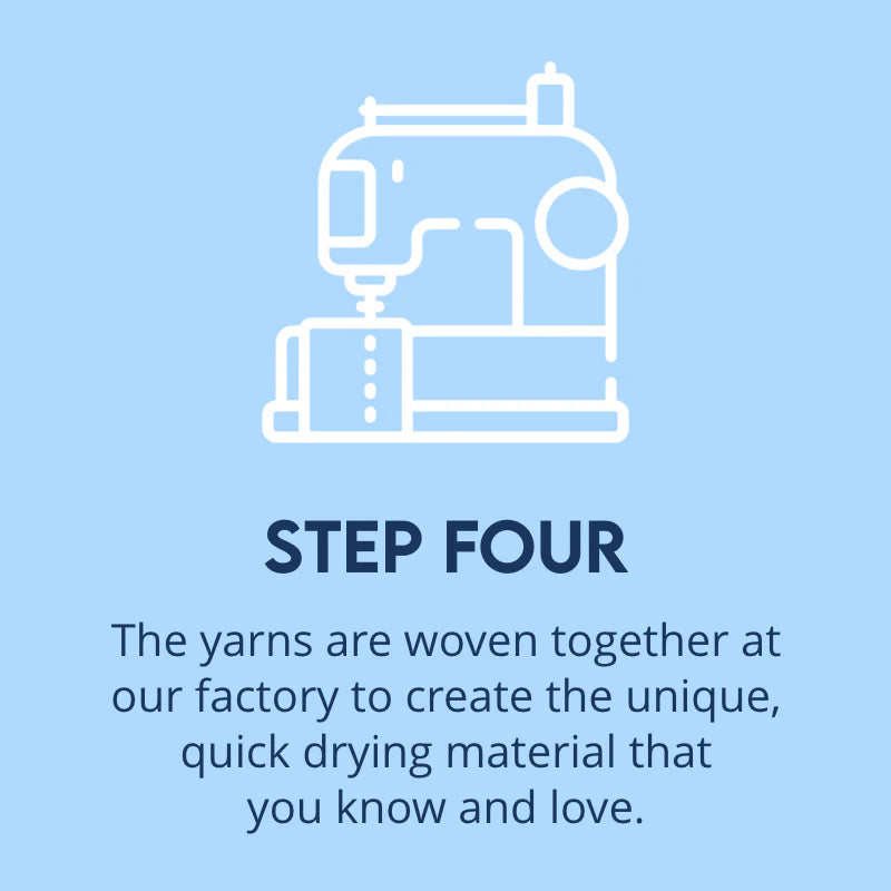 • We use 100% recycled plastic bottles to create our products. We breathe new life into discarded plastic, turning it into towels and other useful products that last a lifetime. One towel bought = 22 fewer bottles in our oceans.