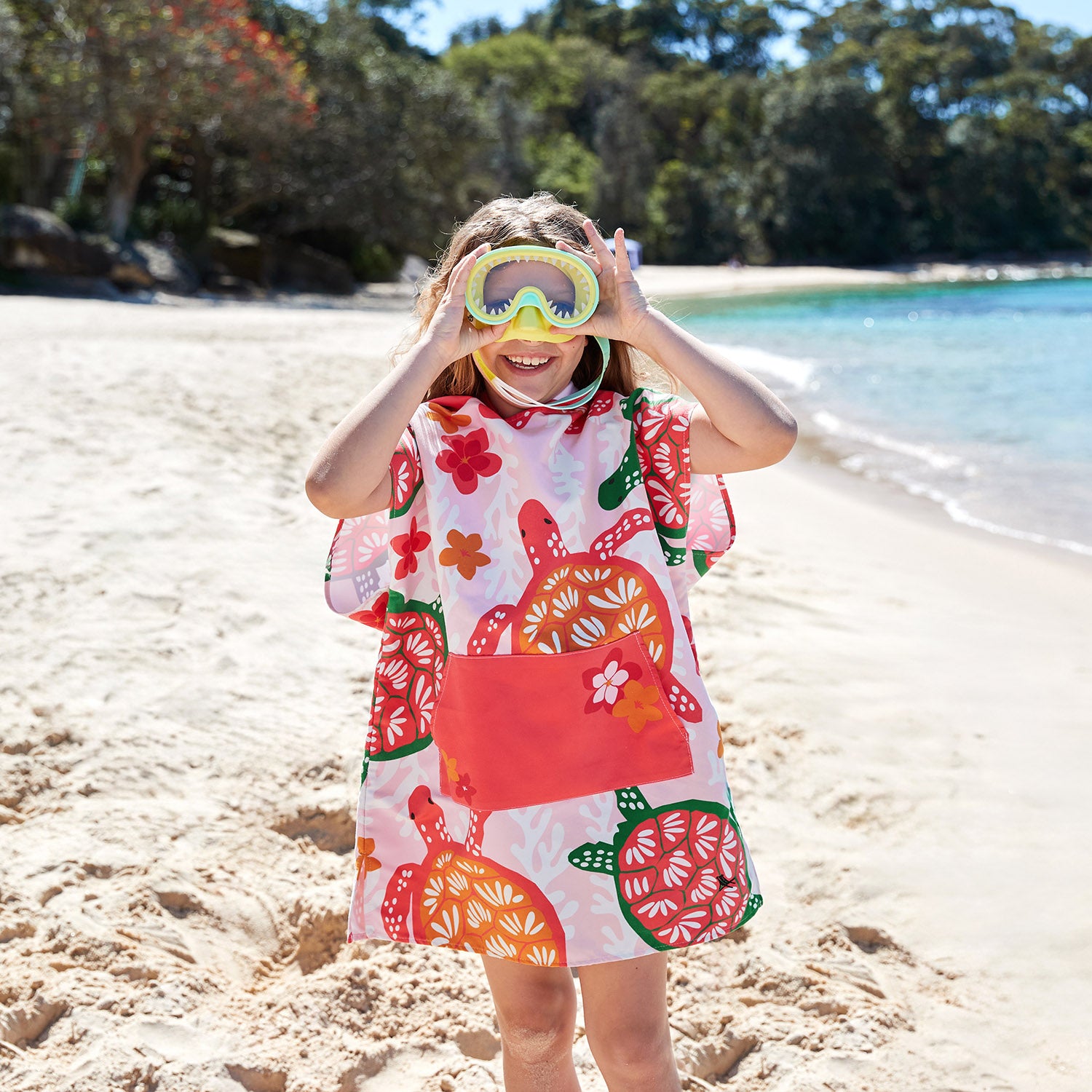 The Kids Poncho designed to make post swim chaos a little calmer. Perfect for beach days, swimming lessons, holidays, or paddling in the sea, it keeps kids warm, covered, and comfy while they dry off or get changed.