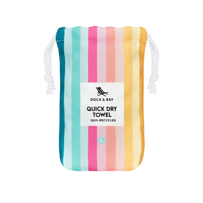 Made from our premium 100% recycled DryQ™ fabric, it dries much faster than standard cotton towels and won’t hold onto damp smells. Sand shakes straight off, it packs down small into its iconic pouch, and it’s ready to go again in no time.