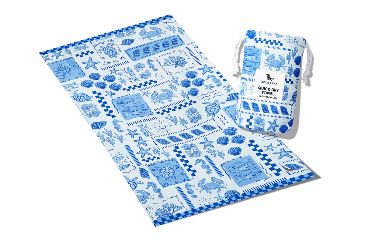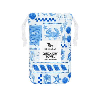 Made from our premium 100% recycled DryQ™ fabric, it dries much faster than standard cotton towels and won’t hold onto damp smells. Sand shakes straight off, it packs down small into its iconic pouch, and it’s ready to go again in no time.