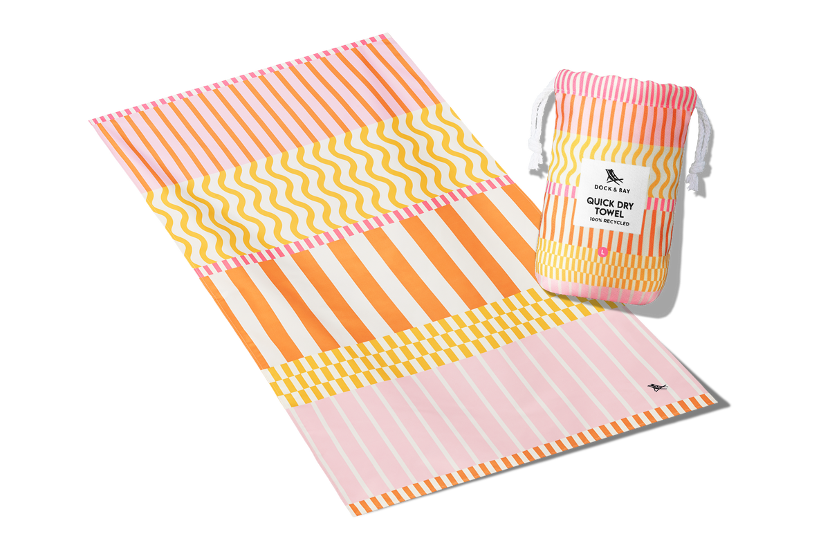 Made from our premium 100% recycled DryQ™ fabric, it dries much faster than standard cotton towels and won’t hold onto damp smells. Sand shakes straight off, it packs down small into its iconic pouch, and it’s ready to go again in no time.