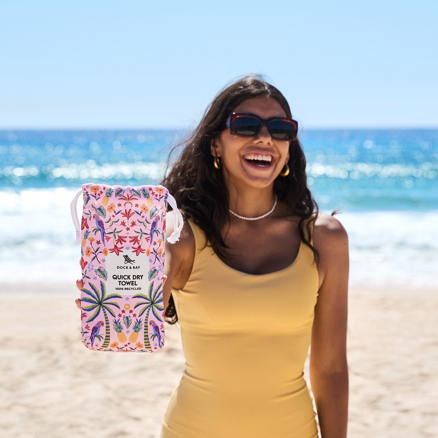 Made from our premium 100% recycled DryQ™ fabric, it dries much faster than standard cotton towels and won’t hold onto damp smells. Sand shakes straight off, it packs down small into its iconic pouch, and it’s ready to go again in no time.
